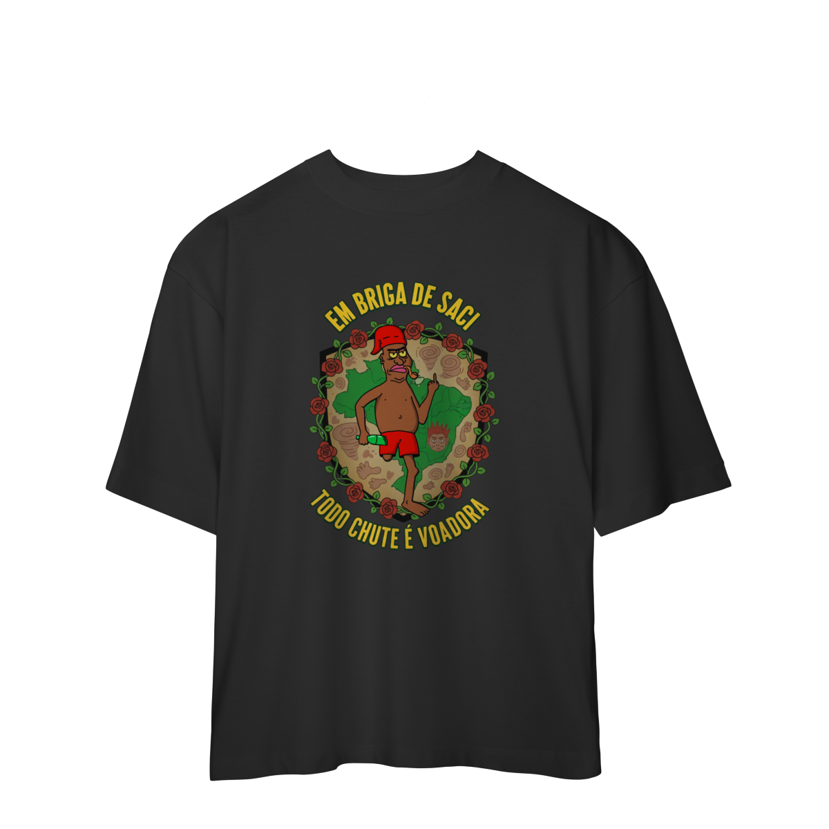 Cores do produto: Como cada tela de computador ou celular tem seu próprio jeito de mostrar cores, então a cor da sua camiseta e da estampa pode ser um pouco diferente do que você viu online.